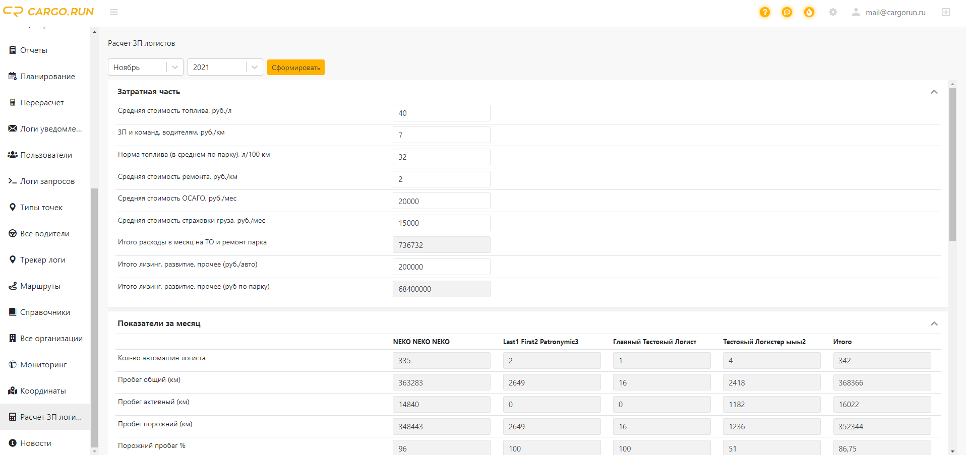 Есть дополнительные поля которые настраиваются вручную, к примеру лизинг и расходы на ремонт, топливо. Исходя из всех этих расчетов формируется расчет зарплаты для логистов.